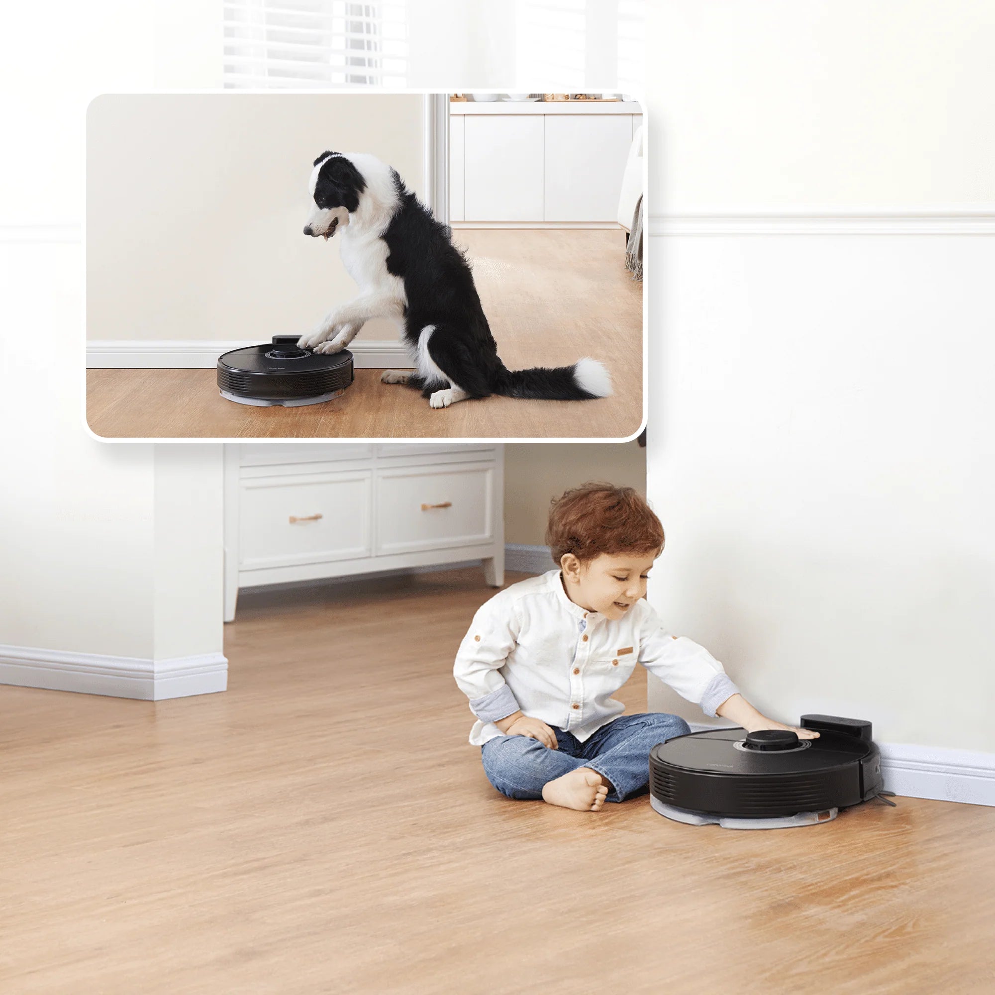 Pierde cuidado, Q7 Max recorrerá tu hogar con total seguridad. El conjunto de sensores Sensient incluye sensores de desnivel, acelerómetros, parachoques, etc. Evitará que el robot aspirador se caiga por las escaleras, se quede atascado o se golpee contra las paredes.